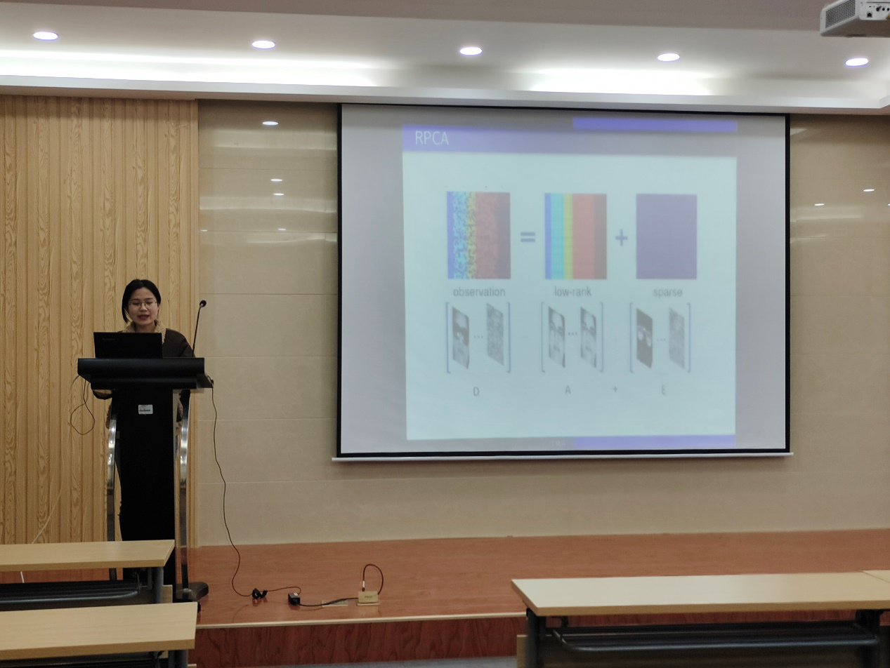 在本次研究生讲坛中,主讲人丁晓云主要讲述了RPCA模型及其改进模型在运动目标检测中的应用。首先,丁晓云通过分析PCA在数据处理等实际应用中的不足,引出了RPCA模型。此外,丁晓云分析了两模型之间的联系与区别,详细阐述了RPCA模型的优越性及其重要的实际应用意义。其次,丁晓云向我们介绍了如何应用ADMM算法对RPCA模型进行求解,使同学们更加直观地了解该模型的结构与层次。然后,丁晓云生动形象地向我们介绍了运动目标检测,并利用实际的场景讲解了应用RPCA实现运动目标检测的过程。针对传统RPCA模型在应用中的不足与缺陷,她向我们列举了一系列的RPCA改进模型,其中重点介绍了复杂动态背景下运动目标检测的RPCA改进模型。结合各个模型之间的联系、区别及其优缺点,丁晓云得出了每种模型所适应的实际场景,并探讨了每种改进模型的ADMM求解思路。最后,丁晓云同学对本次讲坛内容进行了总结,分析了RPCA及其改进模型在应用中的优缺点以及可以改进的方面,指出了RPCA模型在运动目标检测中的发展前景。