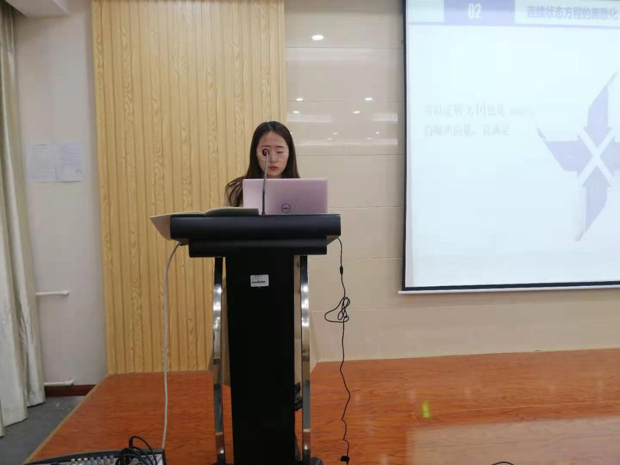 也是 Gauss 白噪声向量。接下来,李敏基于 Taylor 幂级数展开式和奇异值分解理论,求得离散化状态方程形式的解,并利用MATLAB实现了连续线性系统的离散化。最后,基于离散化的状态方程模型,李敏应用MATLAB 语句对连续性系统进行仿真,并对本次讲坛的内容进行总结。