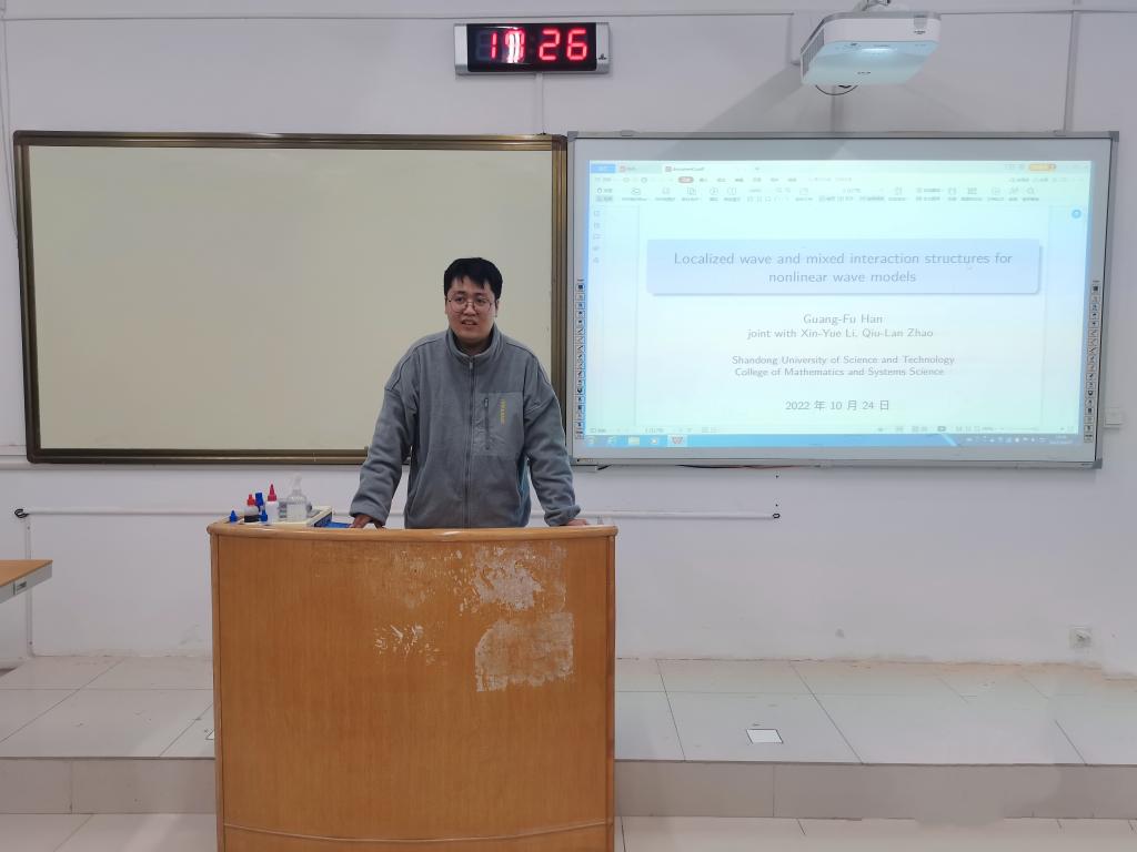 2020级数学硕士韩光福作了题为“非线性波模型中的局域波和混合相互作用结构”的报告。本次讲坛的点评嘉宾是比分网足球