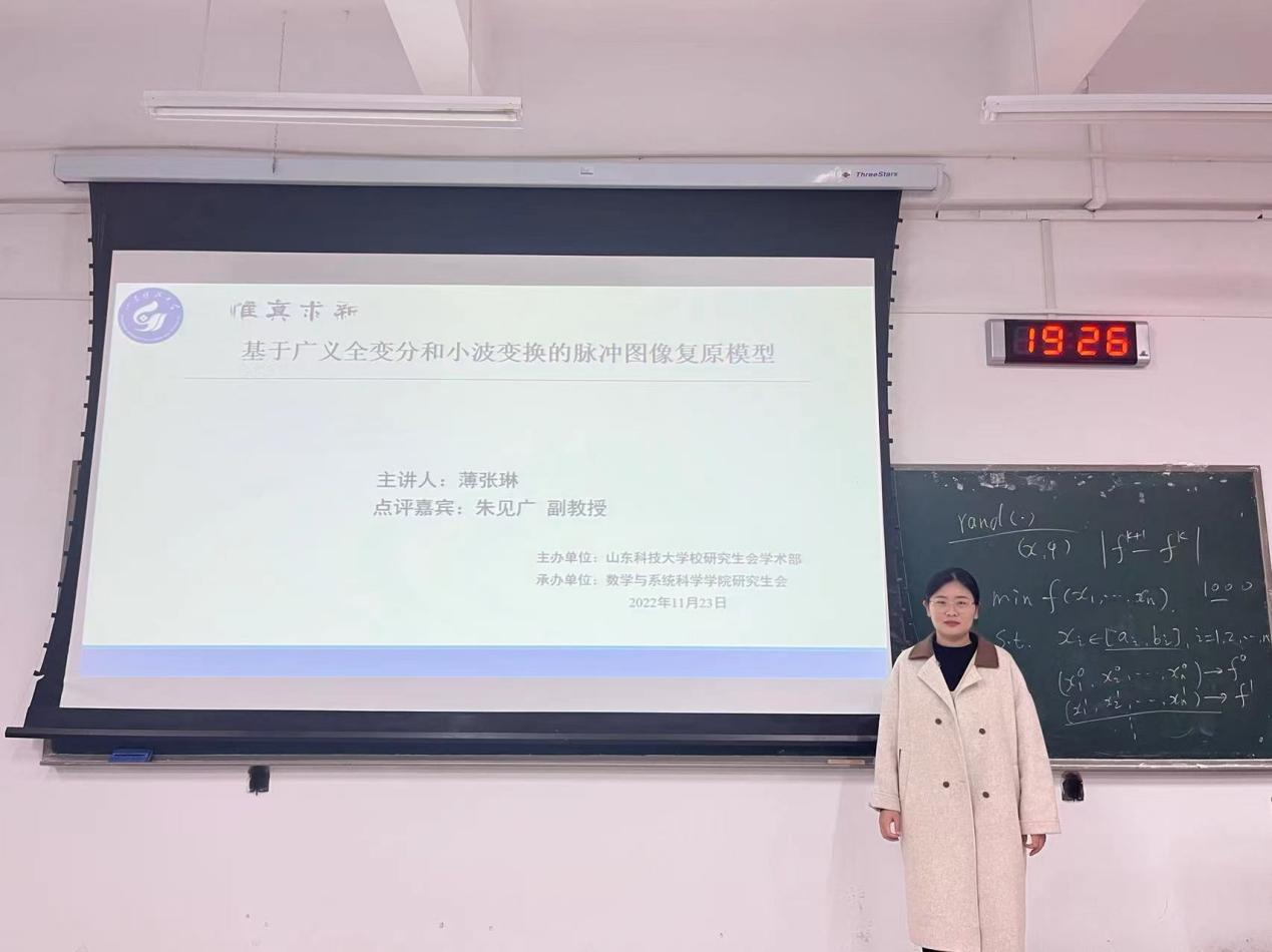 2021级硕士薄张琳作了题为“基于广义全变分和小波变换的脉冲图像复原模型”的报告。本次讲坛的点评嘉宾是比分网足球
