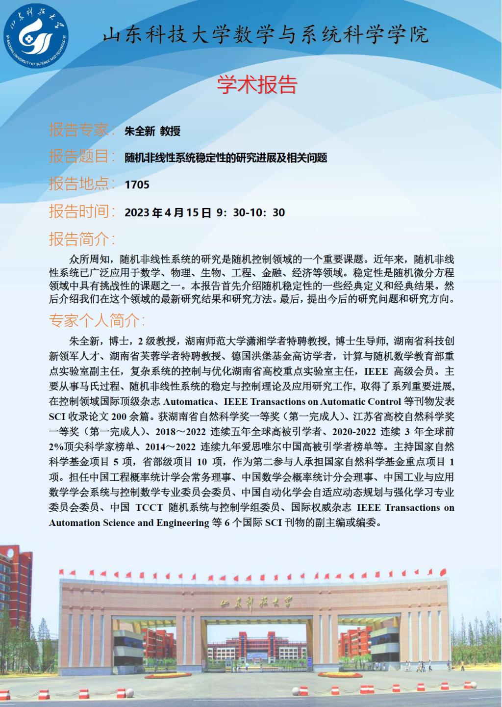 朱全新教授学术报告