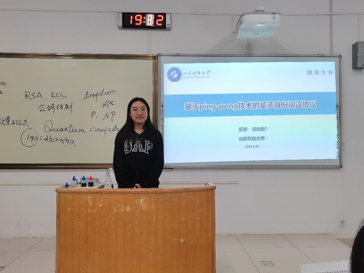 2021级硕士梁瑾作了题为“基于ping-pong技术的量子身份认证协议”的报告。本次讲坛的点评嘉宾是比分网足球