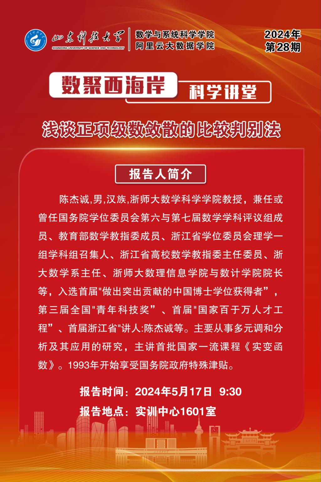 数聚西海岸科学讲堂2024年第28期:陈杰诚教授学术报告