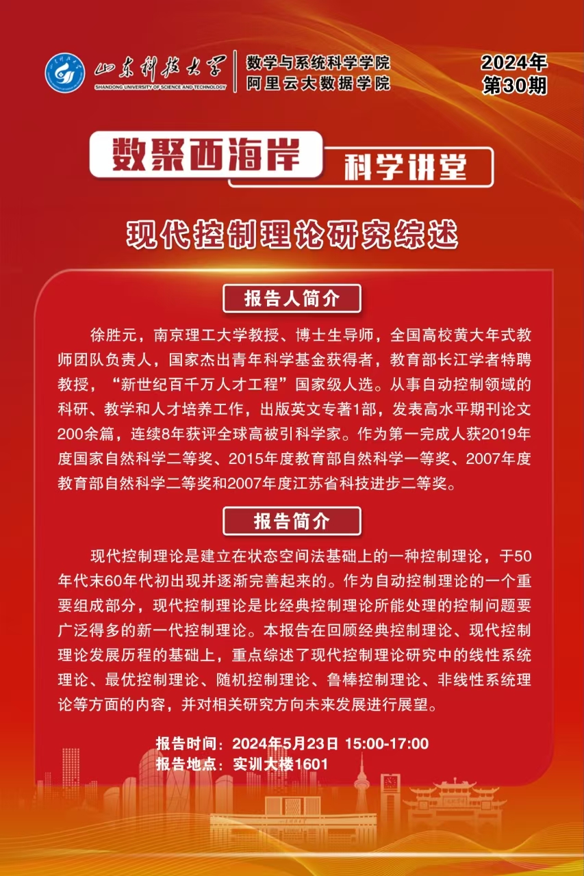数聚西海岸科学讲堂2024年第30期:徐胜元教授学术报告