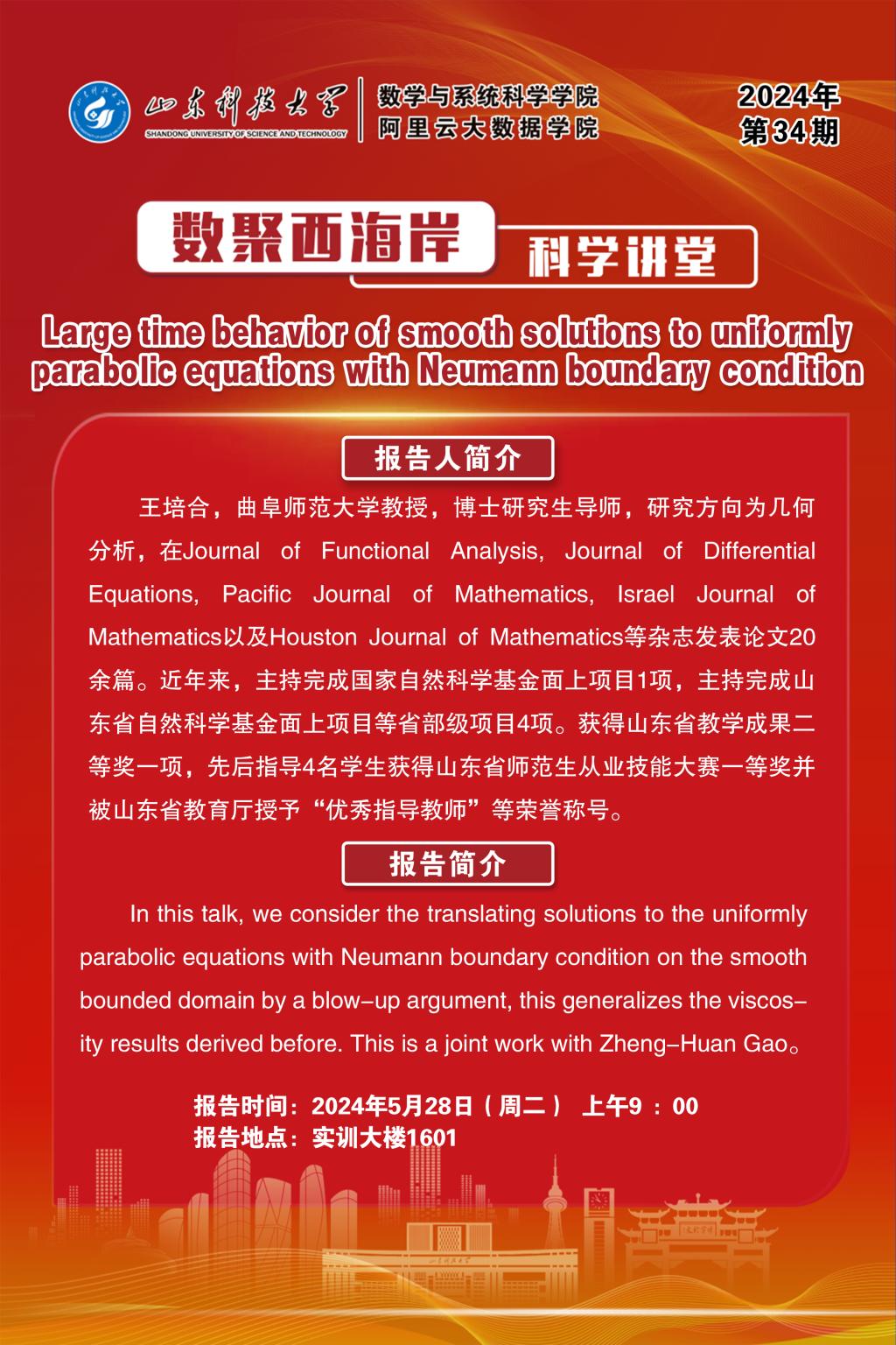 数聚西海岸科学讲堂2024年第33期:王培合教授学术报告
