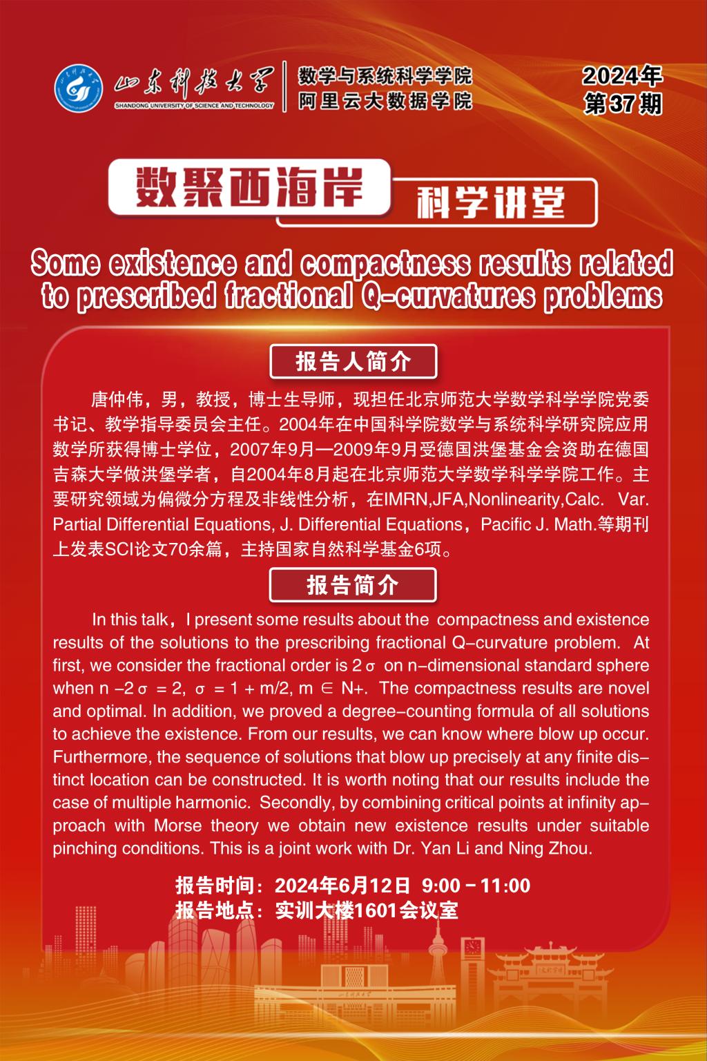 数聚西海岸科学讲堂2024年第37期:唐仲伟教授学术报告