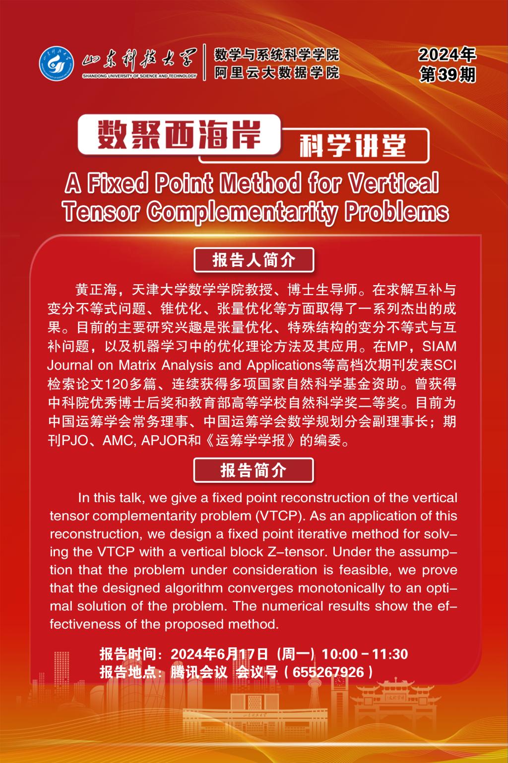 数聚西海岸科学讲堂2024年第39期:黄正海教授学术报告