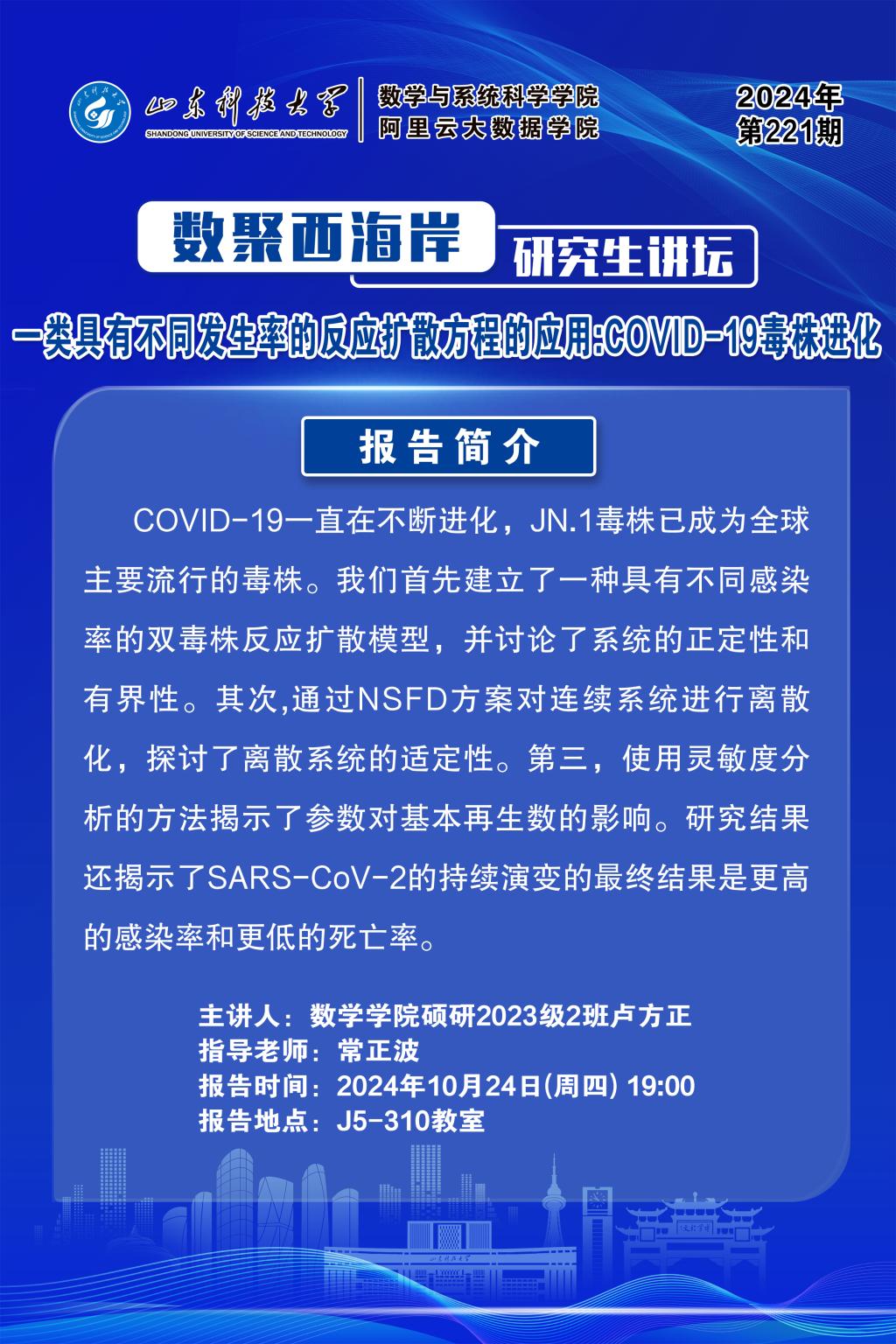 数聚西海岸研究生讲坛2024年第221期:一类具有不同发生率的反应扩散方程的应用:COVID-19毒株进化