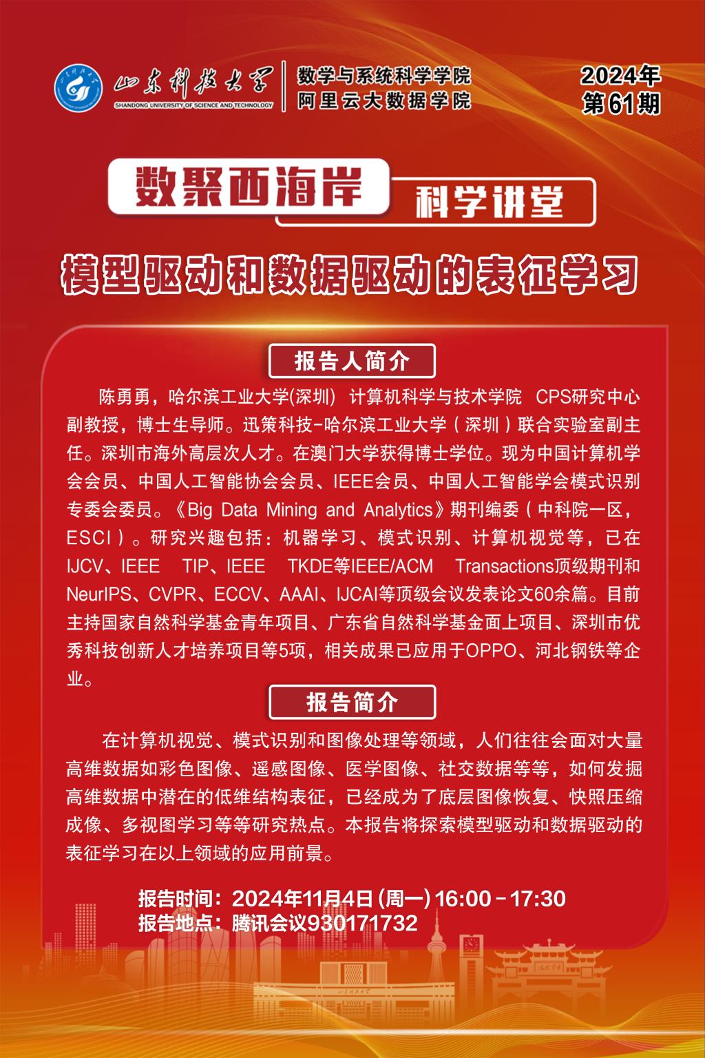 数聚西海岸科学讲堂2024年第61期:陈勇勇学术报告