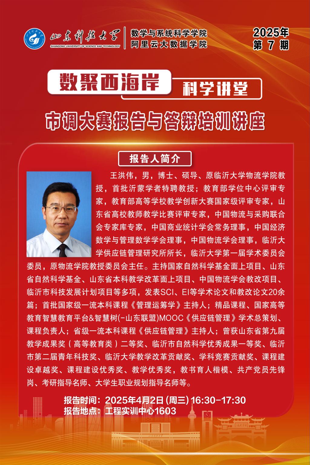 数聚西海岸科学讲堂2025年第7期:王洪伟教授学术报告