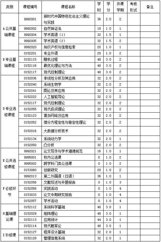 《系统科学基础》、《应用统计》、《矩阵理论》、《现代概率论》