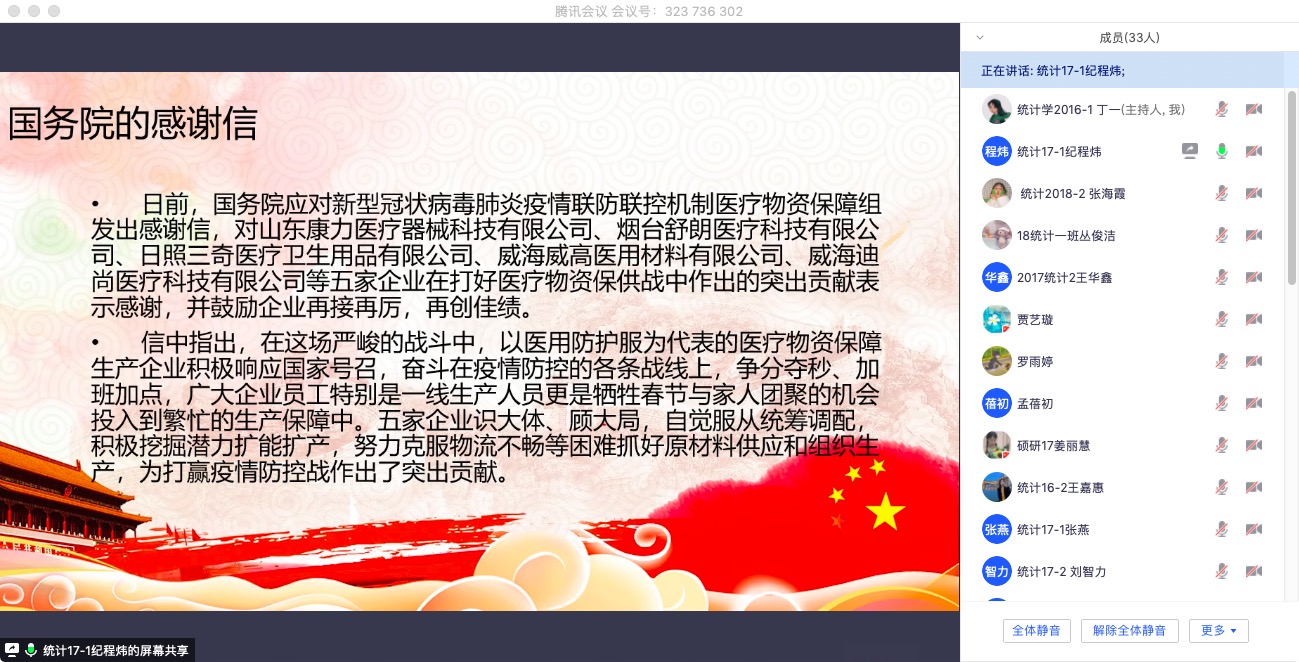 疫情期间,山东的五家企业挺身而出、克服困难,调整生产线,保质保量的完成了国家下达的调拨任务,满足了全国疫情防控需要。与此同时,全国各地涌现出一批青年志愿者,他们实干且有担当,温暖且有作为。隋丽红和纪程炜分别通过介绍战“疫”中的志愿者、企业事迹,号召大家在疫情面前,应切实提高政治站位,全力配合疫情防控工作,充分发挥先锋模范作用,不忘初心,牢记使命,贡献青春力量,诠释青春担当。