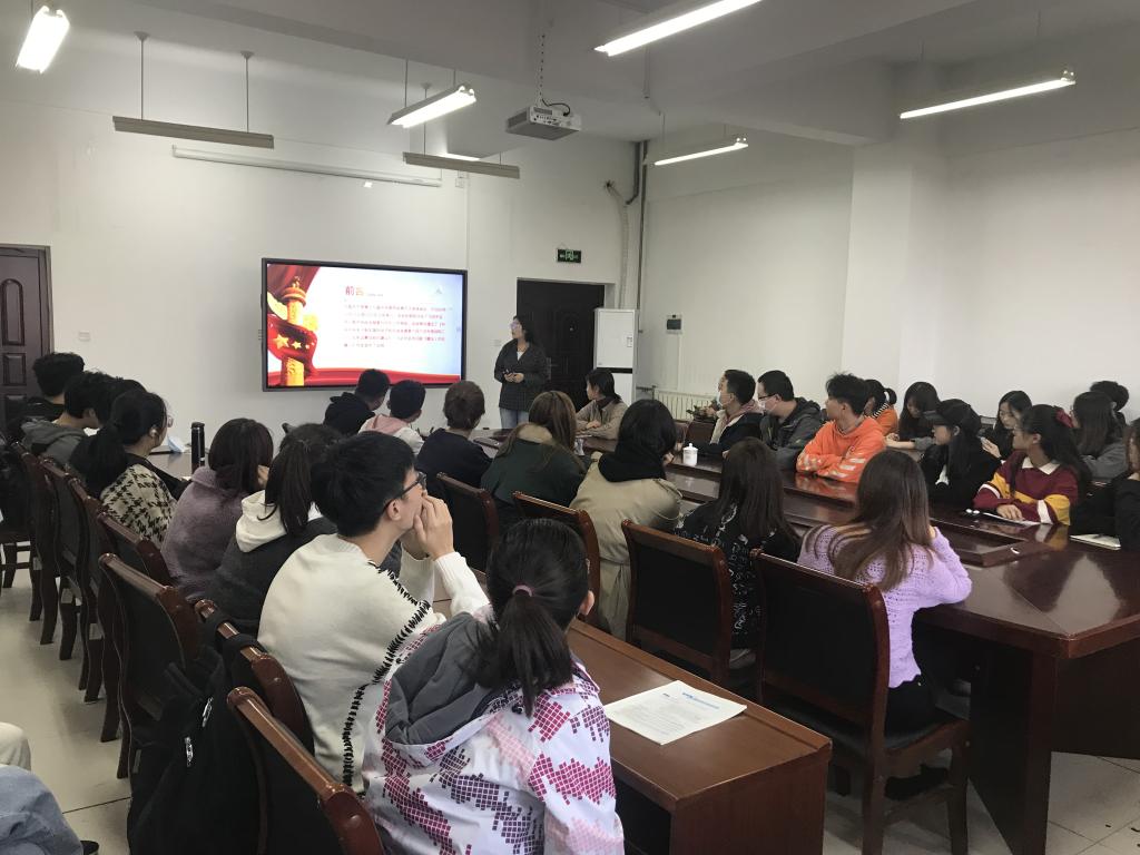 11月13日下午,比分网足球 在J9-425会议室举办了第60期“青春党建微讲堂”主题教育活动。本期“青春党建微讲堂”由本科生第四党支部党员吕琳和肖雅慧担任主讲,本科生第四党支部全体党员、入党积极分子参加活动。