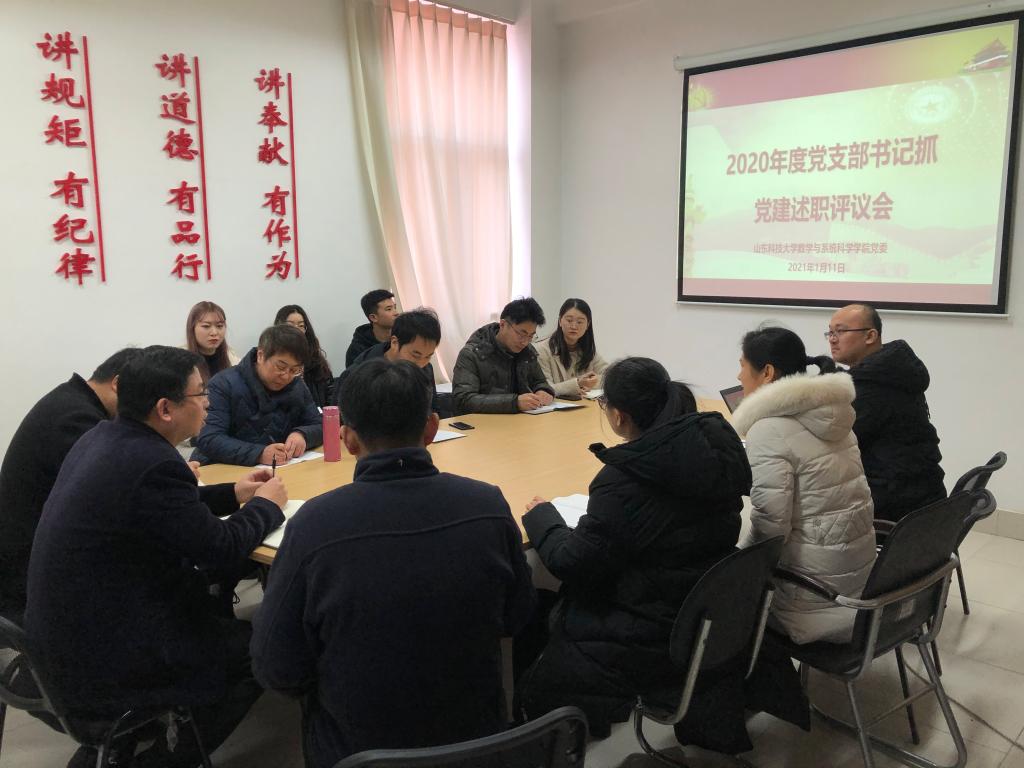 会上,5位教工党支部书记和7位学生党支部书记参照《基层党组织书记抓党建工作述职评议实施办法(试行)》(校党字〔2015〕65号)和《山东科技大学基层党支部“六化”建设实施意见》相关要求,按照实事求是,突出重点的原则,从支部思想政治建设、组织建设、作风建设、存在问题与下步打算等几方面对2020年支部情况进行了汇报。