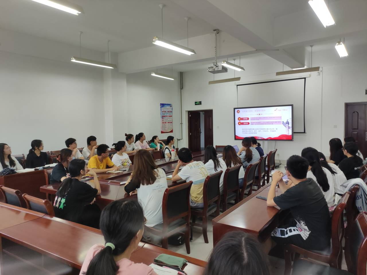 李若琛和张海霞围绕习近平总书记在庆祝中国共产党成立100周年大会上的重要讲话,带领同学们认真学习贯彻“七一”讲话精神,深入领会“七一”重要讲话的核心要义和丰富内涵、回顾中国共产党百年光辉历程、展望中华民族伟大复兴以及习近平总书记对广大青年的寄语。李若琛强调,作为中国共产党党员,我们要坚持走中国特色社会主义道路,加强理论学习,坚持自我,脚踏实地,掌握先进的科学知识,跟上时代的步伐,为社会、人民做贡献,将实现中华民族的伟大复兴当作毕生追求。