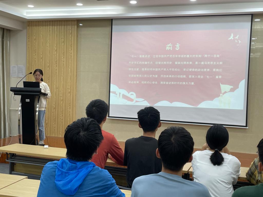 闫维昕结合习近平总书记“七一”讲话内容,带领全体党员认真学习回顾了“七一”讲话的核心要义和丰富内涵。习近平总书记七一讲话精神,意义非凡,党支部成员深刻感受到了我们党带领中国人民取得的非凡成绩,深刻感受到了我们党的伟大与英明,通过学习进一步提高了学生党员的思想觉悟,坚定了理想信念。