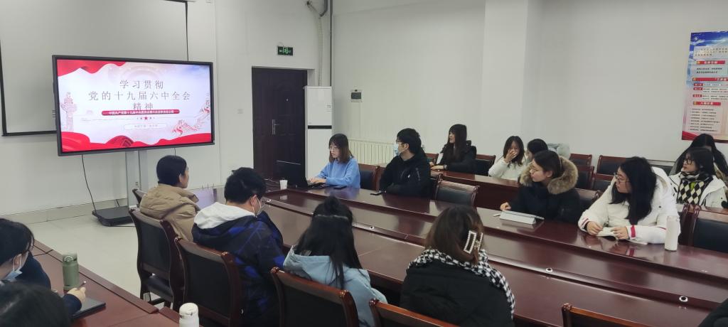 本期微讲堂主要深入学习了党的十九届六中全会精神。他们围绕深刻认识党的百年奋斗的初心使命和重大成就,深刻认识中国特色社会主义新时代的历史性成就和历史性变革,深刻认识党的百年奋斗的历史意义和历史经验等方面带领同学们进行了学习。他们指出,作为新时代的大学生党员,要站在时代发展的最前列,充分发挥先锋模范作用,努力在学习工作中将个人价值和社会价值的实现统一起来!