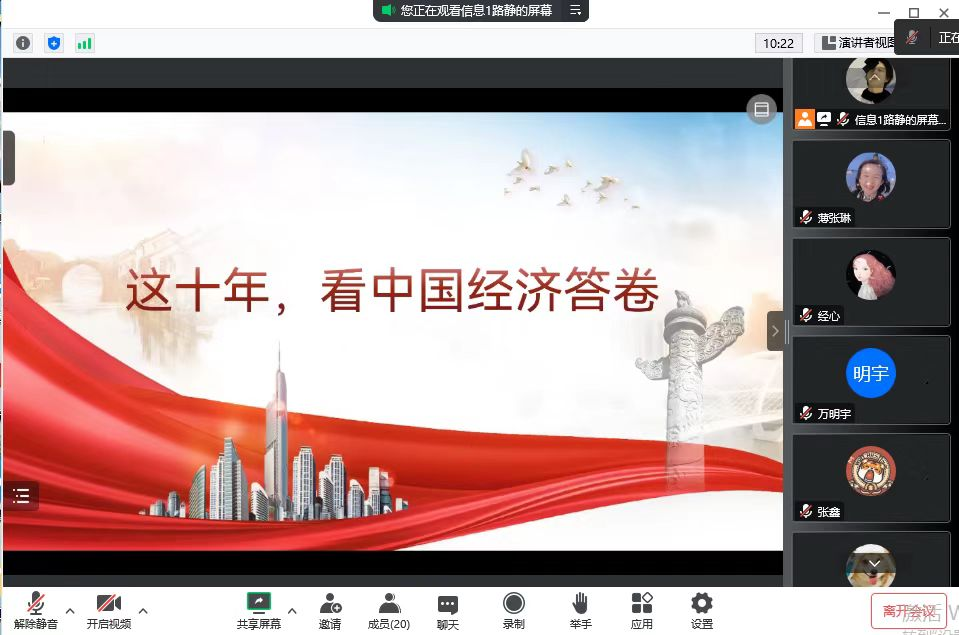 10月15日晚,比分网足球 学霸助教团师生党支部通过腾讯会议线上举办了 “青春党建微讲堂”主题教育活动。本次微讲堂由学霸助教团师生党支部党员路静担任主讲,主题为“中国这十年”。学霸助教团党支部全体成员参加了此次会议。