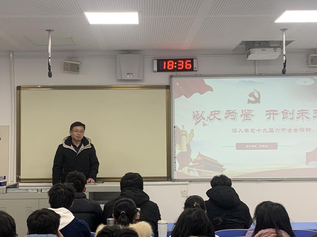 为学习好、宣传好、贯彻好党的十九届六中全会精神,确保六中全会学习宣传往深里走、往实里走、往心里走。近日,学院党委书记徐明磊在J7-313教室为所联系班级统计学2021-1班全体学生宣讲党的十九届六中全会精神。