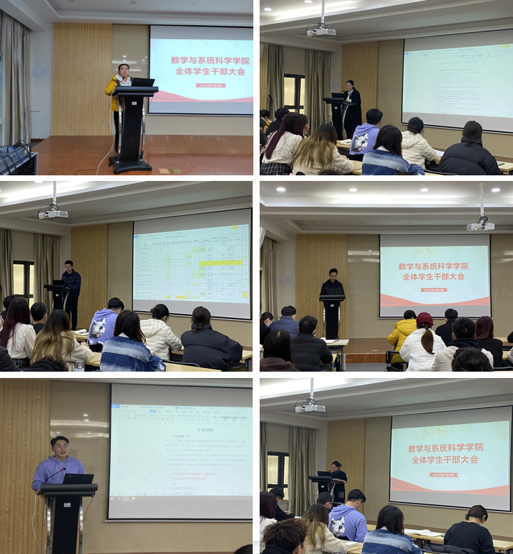 会上,各年级辅导员依次就分管工作及所带学生的学习、科技创新、公寓卫生等情况进行总结汇报。谢菲菲就学院2021年学团工作进行全面总结,针对学团工作的薄弱环节进行了反思与剖析,对新学期重点工作进行部署安排,她要求全体学生干部要强化责任意识,严格落实学校疫情防控要求,结合庆祝建团100周年,深入扎实开展系列活动,要积极营造比学赶帮超的良好氛围,提高创新能力,抓住机遇,以实际行动迎接党的二十大胜利召开。