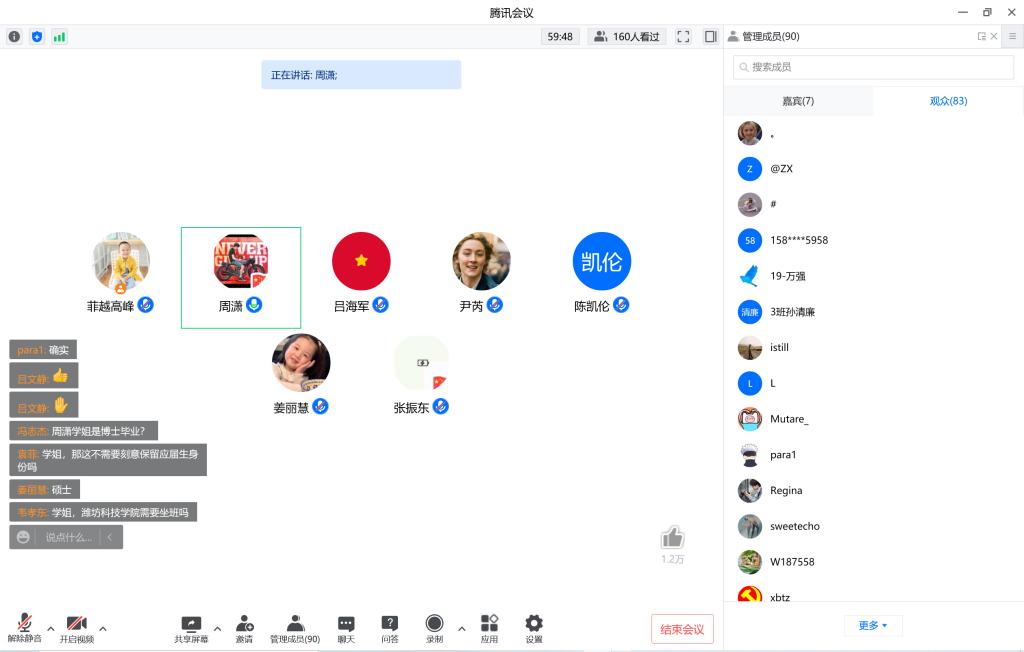 分享会气氛融洽,参会学生反应热烈,积极向学长学姐们提问,线上会议室累积点赞达1.2万余次。“学长学姐所分享的他们在各行各业的求职就职经历,不仅为我们提供了更加多样化、多渠道的就业思路,也能够帮助我们在今后求职的过程中少走弯路。”硕研2019级1班的袁菲说道。