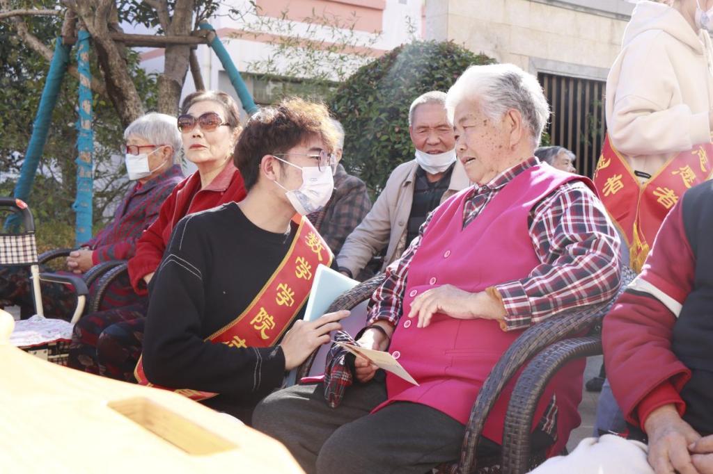 进入敬老院后,志愿者们便有序忙碌起来。有的志愿者与老人们唠家常,并赠送为老人们准备的暖心贺卡;有的为老人捶背按摩,为老人介绍保健常识;有的为老人分发水果与点心,让老人们感受到浓浓的亲情和关爱。此外,志愿者们还为老人们准备了文艺节目表演,普及了防诈骗与健康安全知识……敬老院内洋溢着一片温馨、祥和的气氛。活动结束后,志愿者们纷纷表示,敬老爱老活动非常有意义,关爱老人既是中华民族传统美德,也是青年大学生的责任,在接下来的学习生活中,要脚踏实地、学以致用,用温情回馈社会,用真意体悟人生。