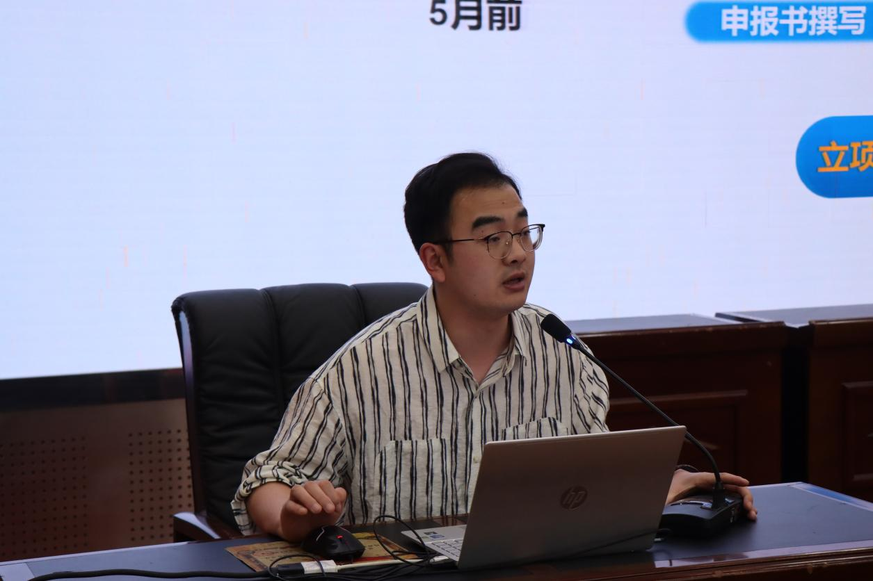 会上,诸葛祥玉深入解读了大学生创新创业训练计划项目,梳理了国家和省级相关政策文件,明晰了大学生创新创业训练计划项目的重要作用。他从了解政策、组建团队、提出问题,到立项申报、资源筹备、数据处理,再到成果形成与结题验收,详细剖析了各个阶段的主要内容以及注意事项。他强调作为学生要积极主动、充分准备,组建团队要注重专业交叉、分工明确,项目推进过程中要勇于尝试、敢于创新、敢于实践,要将大学生创新创业计划项目作为锻炼自身能力、提升综合素质的重要途径。