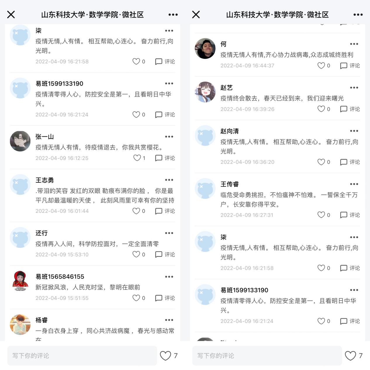 “黎元之所寄,何为报酬;家国之有难,不计生死;白衣之抗疫,一往无前!”短短三行诗,写不尽同学们对奋战一线的“大白”、主动请缨的志愿者们的真挚情感。参与同学表示,写出自己衷心的祝愿,鼓励身边的人是一件很有意义的事,我相信不管疫情多么严峻,只要大家齐心协力,我们终会取得胜利。