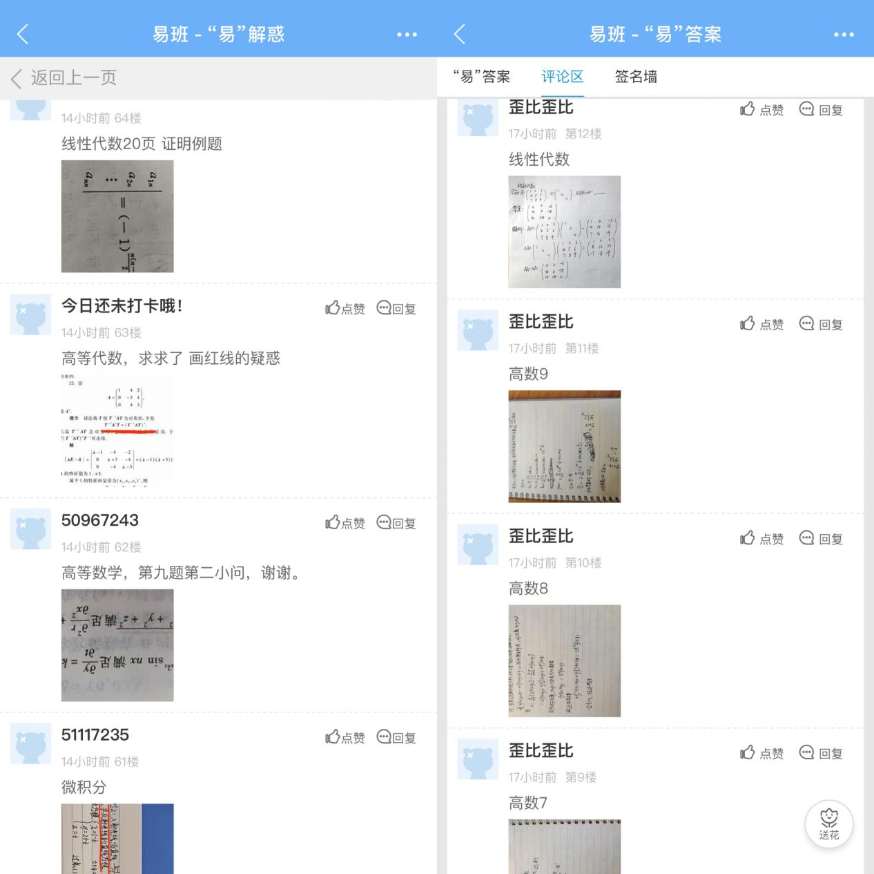活动期间,同学们在“‘易’解惑”快搭的评论区发送数学类课程学习过程中遇到的难题,学霸助教们在评论区为同学们分析问题考察的知识点,精准对接,化疑为易,构成有的放矢的解题模式;除了提问问题,同学们还可以在评论区分享实用的解题干货,形成了“问-答-享”的良性循环。