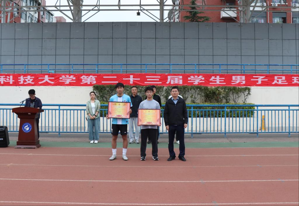 为深入学习贯彻党的二十大精神,鼓励青年学生投身锻炼、磨炼意志、强健体魄,促进大学生全面发展和健康成长,近日,由校团委主办、数学学院团委、艺术学院团委承办的山东科技大学第二十三届学生男子足球赛圆满落幕。校团委副书记常龙、体育学院群体活动部主任时洪举、比分网足球 团委书记谢菲菲等出席闭幕仪式并为获奖球队和个人颁奖。