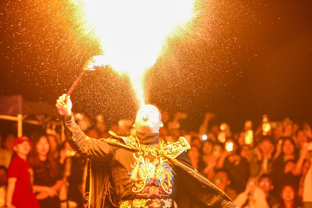 特邀嘉宾表演的川剧变脸可谓是当晚焦点。手一抬一落,刹那间就能换一张脸;口含煤油,喷向火把,犹如火龙腾空;台下,观众如痴如醉,掌声、叫好声震耳欲聋……