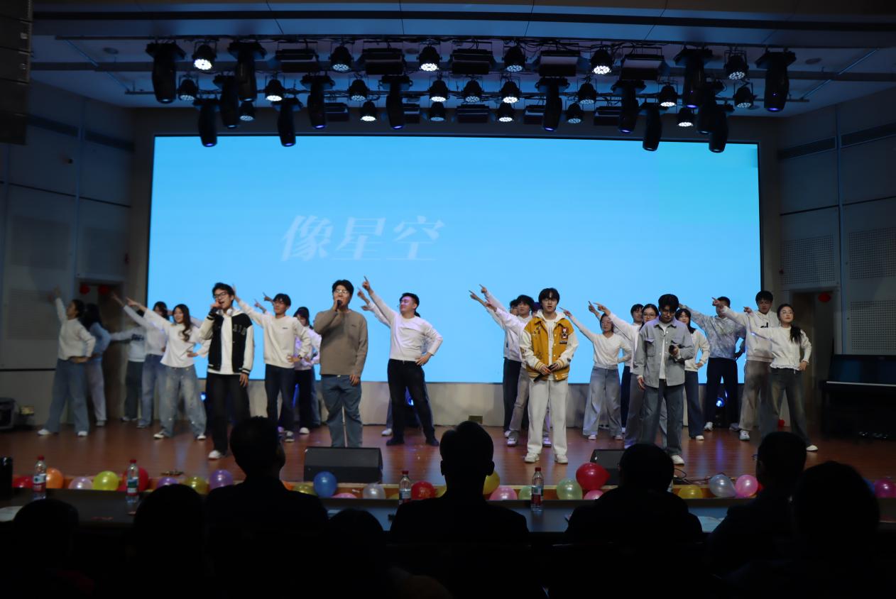 晚会以 “数启新春辞旧岁”“学途似海勇担当”“奋楫扬帆再出发” 三个篇章层层递进,节目形式多元出彩,现场掌声与欢呼声此起彼伏。开场歌舞《第一天》《果敢》瞬间点燃全场氛围,随后《炁》《言不由衷》的婉转歌声、《ABRACADABRA》《STEADY》的动感舞姿、情景剧《AI 莫能助》的创意表达、脱口秀《老实人》的幽默金句、走秀《山海》的惊艳呈现轮番登场,校大学生艺术团器乐队的《云宫迅音》奏响经典,氢气之子乐队的摇滚曲目彰显青春态度,李欣越老师的《童话》温柔治愈,音诗画《逆光》传递奋进力量,学院团委教师们的《陪你度过漫长岁月》更添温情,让整场晚会亮点纷呈。