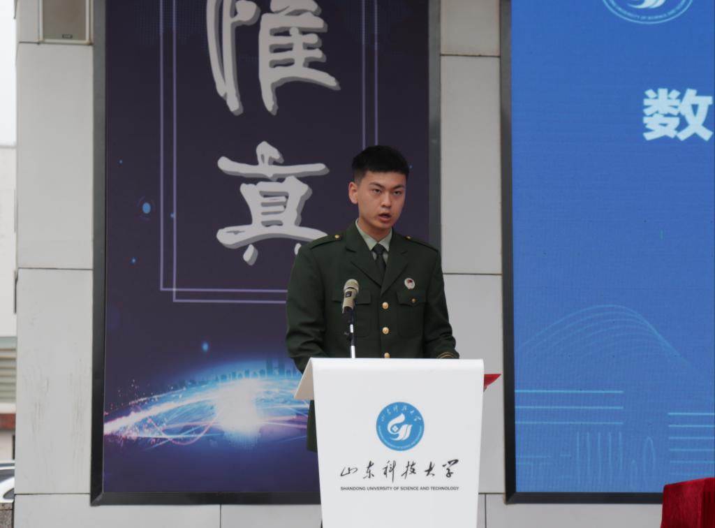 2019级退伍复学学生柳元辉上台发言,他分享了自己在部队期间的成长与感悟,“流血流汗不流泪,掉皮掉肉不掉队”,他希望同学们能在团结和鼓励中共同进步,在坚持和陪伴下彼此珍惜,以良好的精神面貌和过硬的军事素质,勇敢地投入到军训生活中去。
