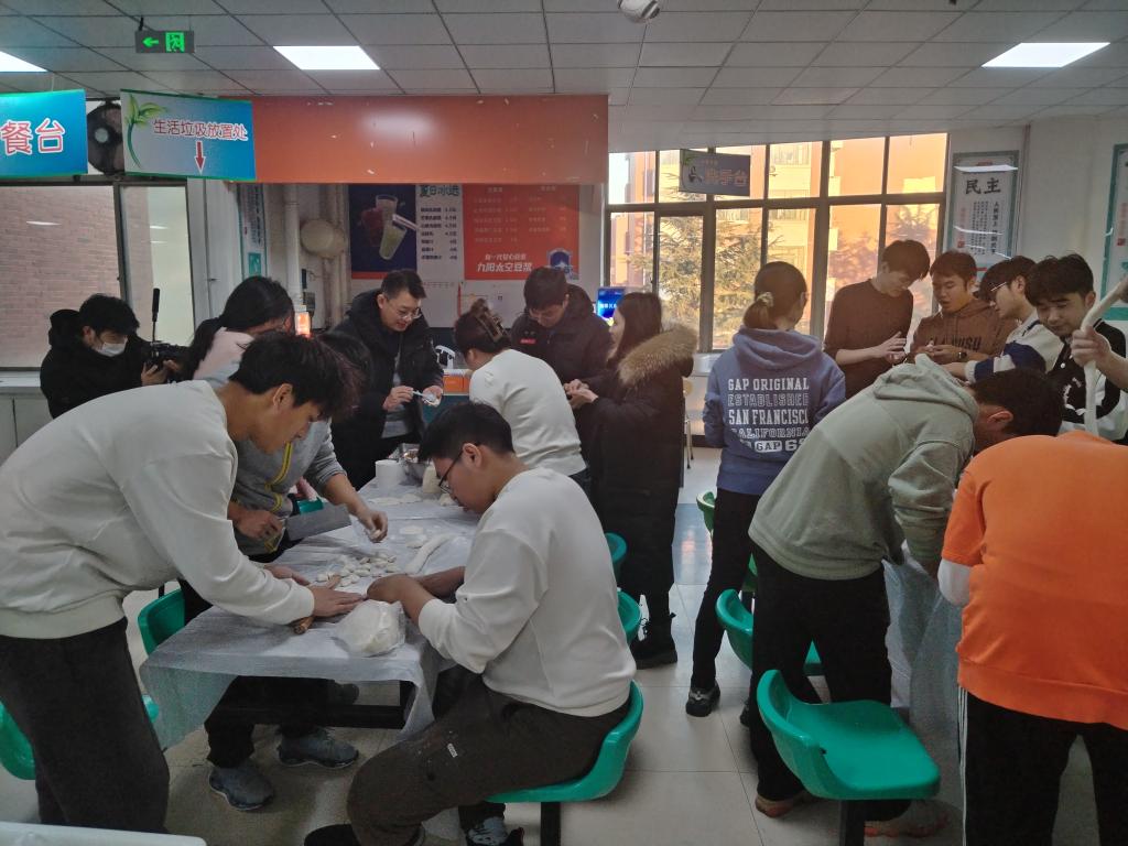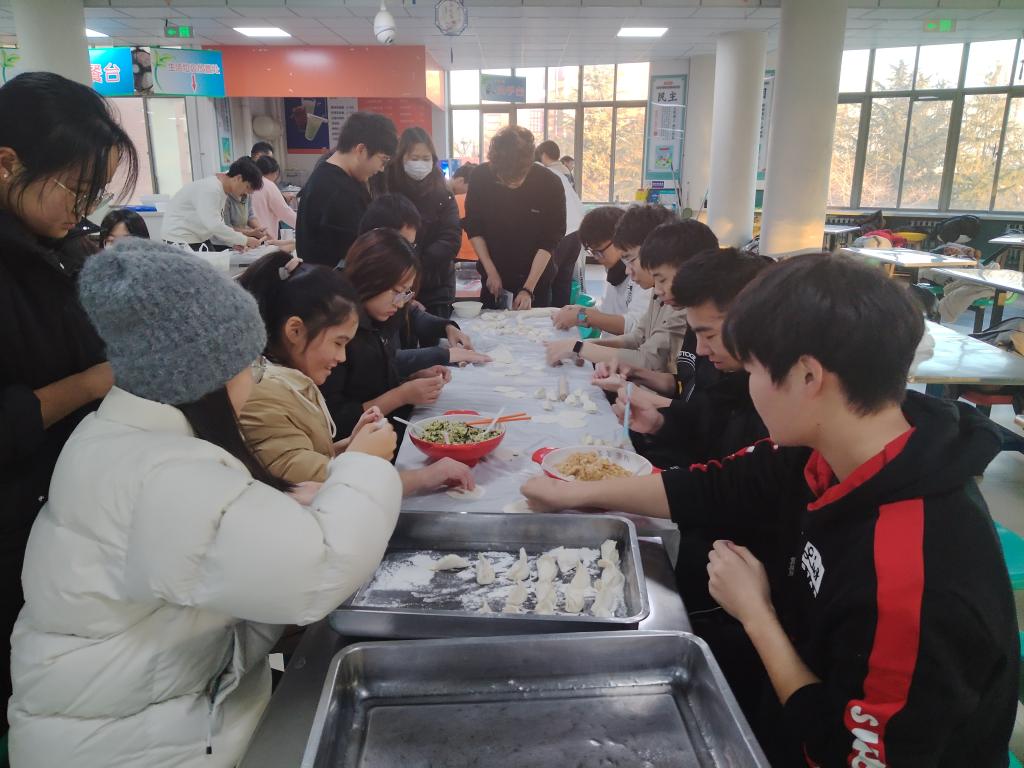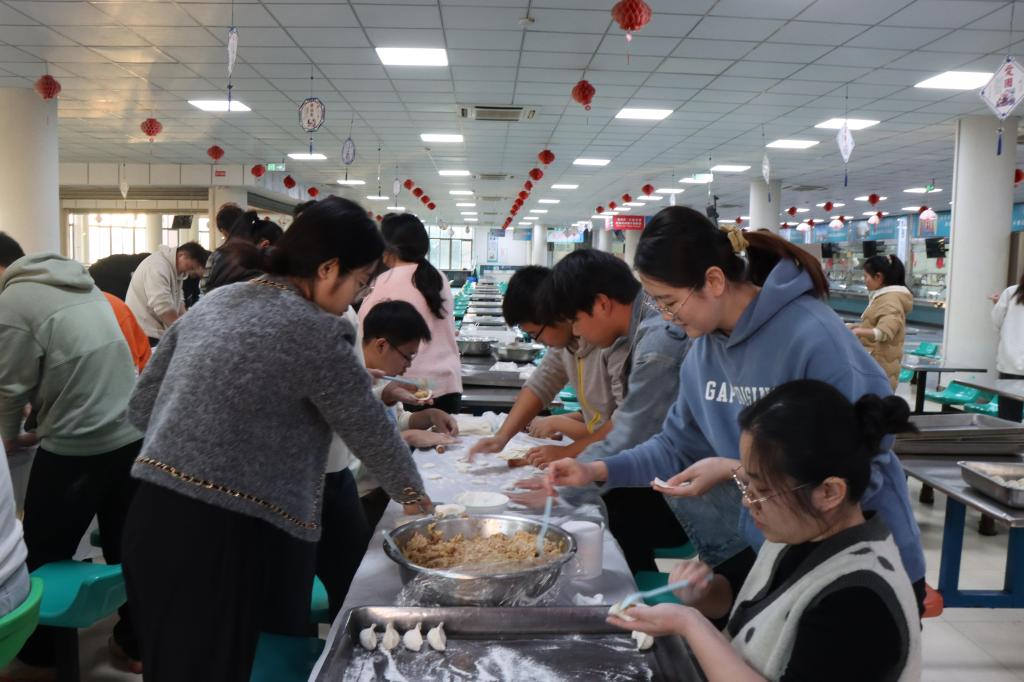 百余名师生相聚学海餐厅,参与冬至包饺子活动。