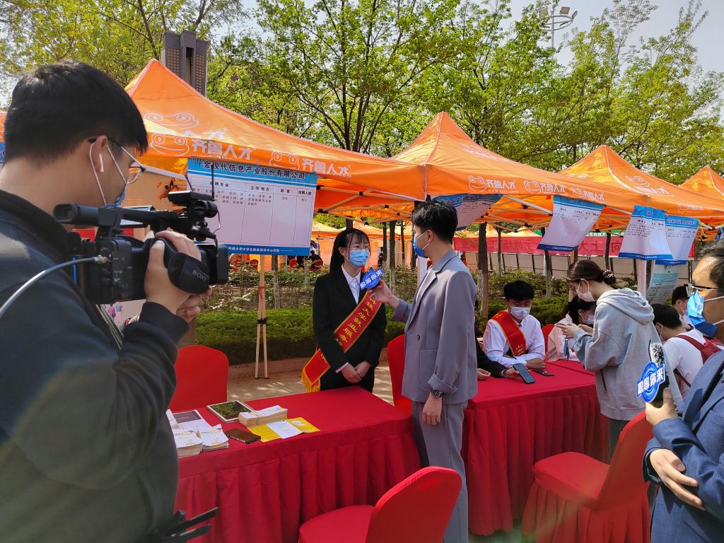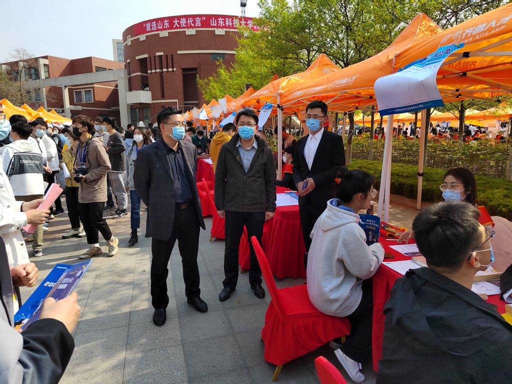 4月20日,山东科技大学春季校园双选会在尤洛卡广场举行。学院党委书记徐明磊、党委副书记兼副院长刘辉、团委书记谢菲菲及各年级辅导员到现场交流参观。