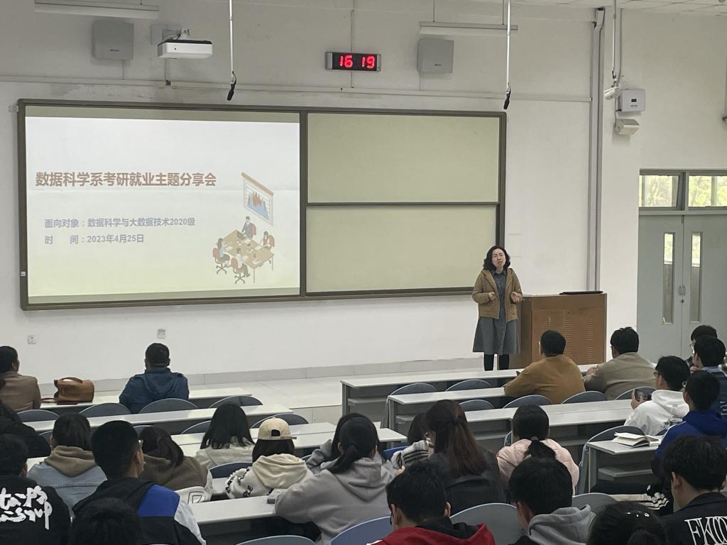 为更好地指导学生了解考研和就业形势,帮助其树立正确的考研与就业观,4月25日下午,比分网足球 在J1-227召开大数据专业2024届毕业生考研就业交流会。大数据一系主任孙秋霞、大数据二系主任张玉林及150余名学生参加活动。