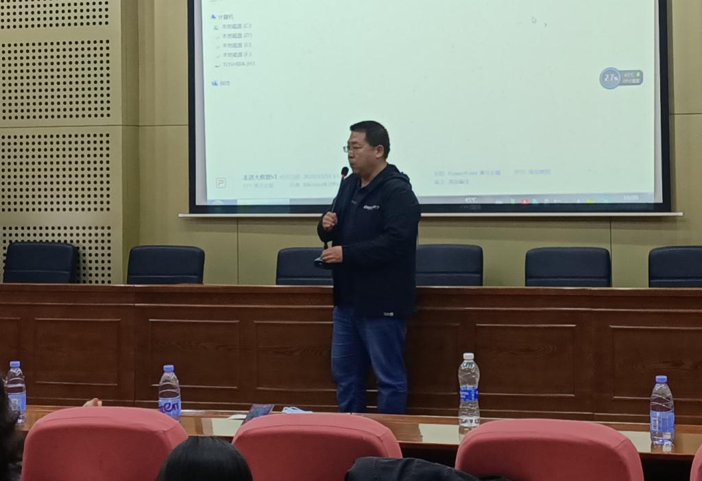 吴兴华从数据智能技术与产业发展、阿里巴巴与阿里云、大数据学院人才培养级产业人才需求解读等四个方面为同学们介绍了大数据行业和技术发展、岗位人才能力需求、所学专业与未来人才需求关系等内容。他建议同学们要树立“聪明、皮实、乐观、自省”八字人才观,珍惜当下时光,注重个人综合素养的提升。