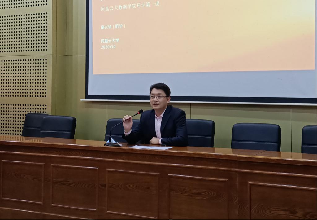 10月10日下午,阿里云计算有限公司高校合作运营总监吴兴华和青岛青软创新科技集团股份有限公司对接校企合作产业学院院长徐美姣受邀在J4-104报告厅为我院数据科学与大数据技术专业2020级学生作入学专业教育—企业方开学第一课,报告由院党委副书记兼副院长刘辉主持。