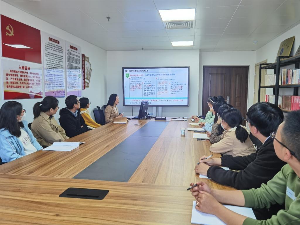教师刘洪霞在实训大楼1610会议室为我院近五年入职的青年教师作师德师风专题讲座,讲座由学院副院长张同迁主持。