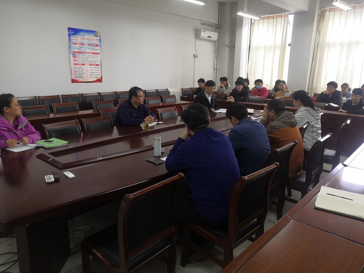在J9-425会议室召开期中教学检查学生座谈会。副院长张同迁、各系主任、实验中心主任、团委负责人、教科办人员及学生代表参加了座谈会。