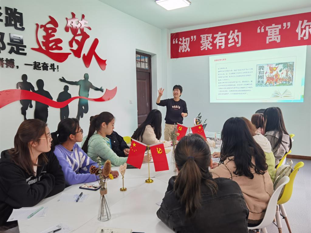 “淑”聚有约学生公寓活动室,为学院部分团支书代表生动讲述百年党史。讲座由学院团委书记谢菲菲主持。