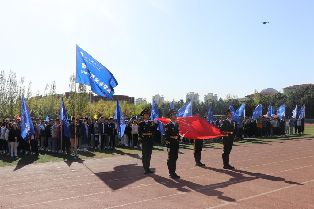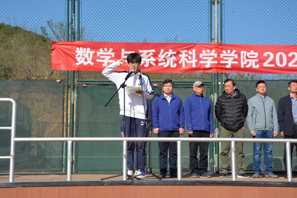 上午8时整,开幕式在庄严的国歌声中拉开帷幕。董焕河致开幕辞,他向运动会的开幕表示热烈祝贺!向参赛运动员致以诚挚慰问!向为运动会付出辛勤劳动的师生表示衷心感谢!他指出,学院师生“四球一会”联谊赛特色活动持续开展,数学学子在学校各项体育赛事中喜获佳绩,都充分展现了我院师生团结协作的良好精神风貌。同时,丰富多彩的体育活动也是我院“三全育人”彩虹计划实施的重要载体之一。“海阔凭鱼跃,天高任鸟飞”,他希望全体运动员能够发扬更高、更快、更强的体育精神,赛出数院学子的风采和水平,全面促进我院体育成绩和竞技精神跃上一个新台阶!