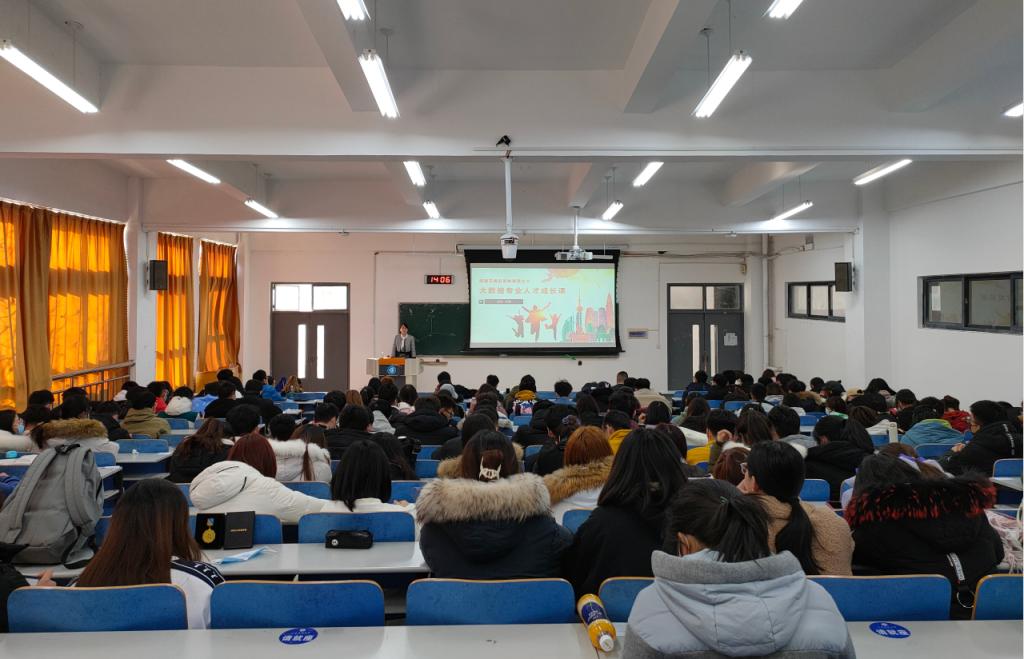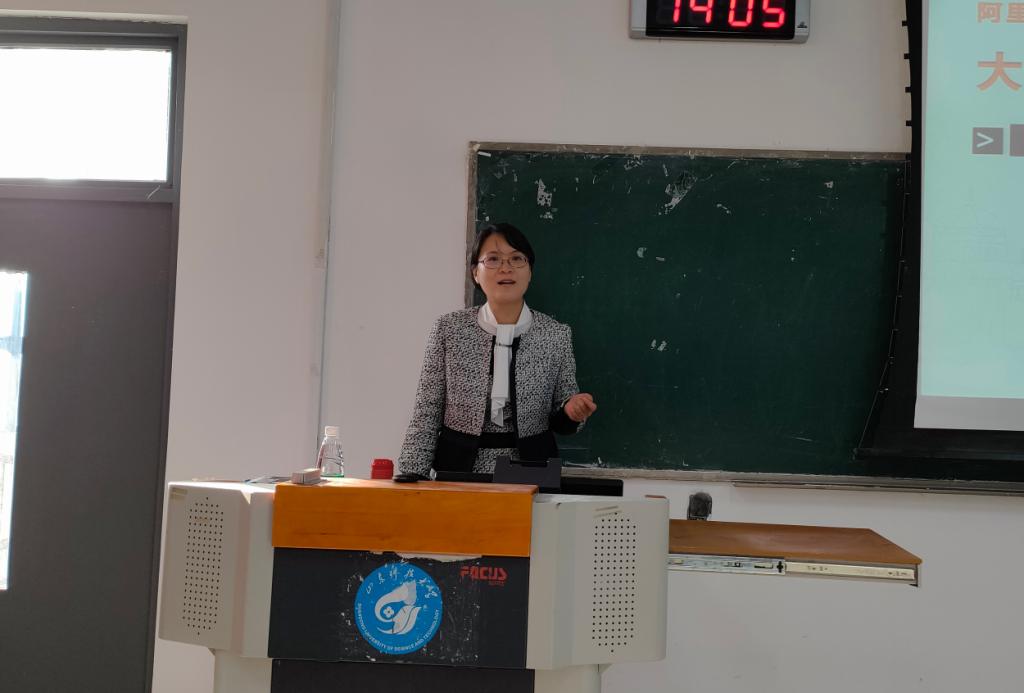 在J5-308组织开展了一堂大数据专业人才成长课,阿里云大学认证讲师陈蕾受邀担任本次课程主讲人,学院2019级统计学(数据分析方向)专业全体学生及部分其他专业感兴趣学生参加了课程。