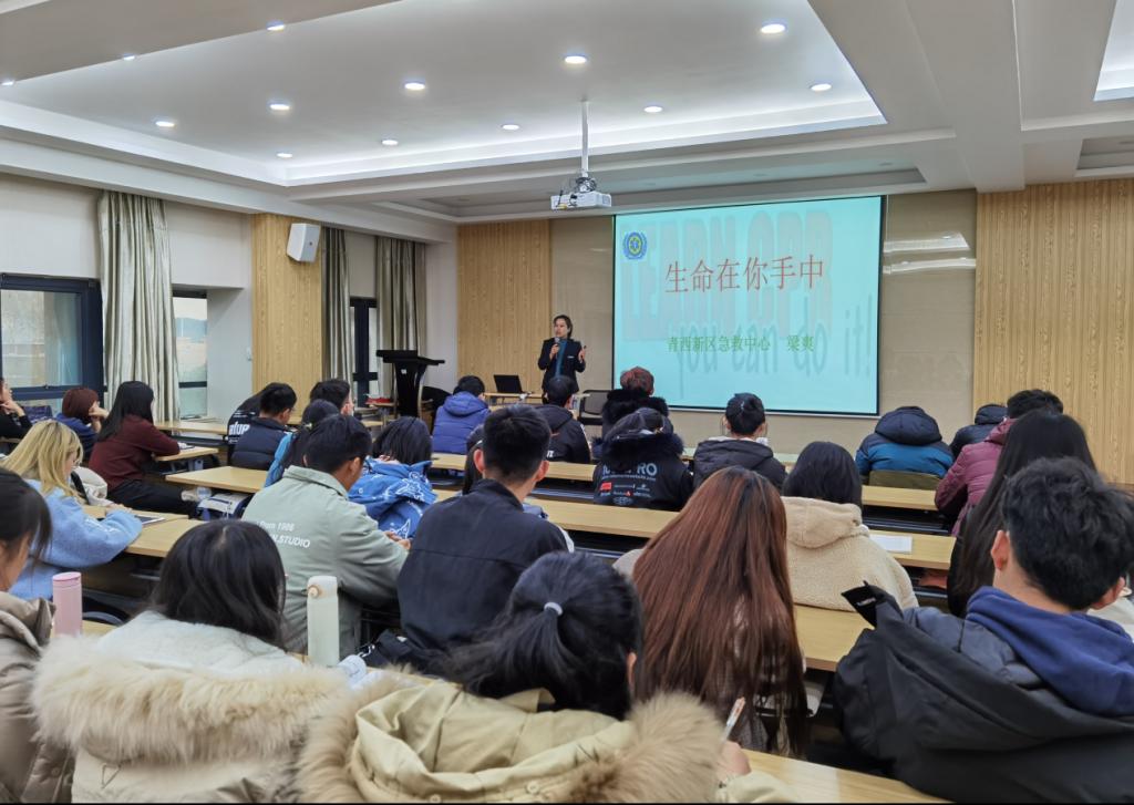 为加强大学生安全突发事故自救知识教育,提高学生自救及互救能力。12月9日下午,青岛西海岸新区急救中心的专家梁爽、闫云霞与张宝洁受邀来我院开展急救技能知识培训。培训由学院团委书记谢菲菲主持。