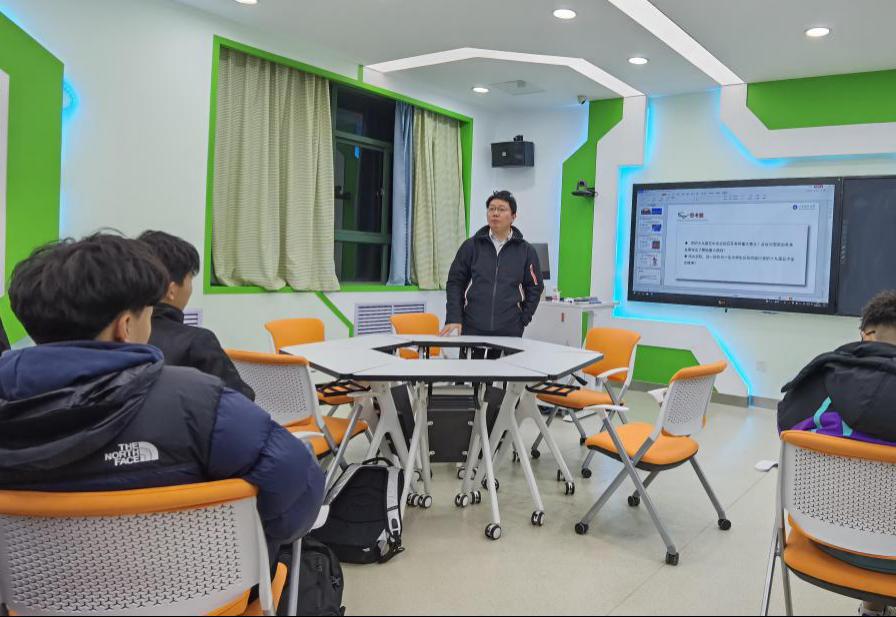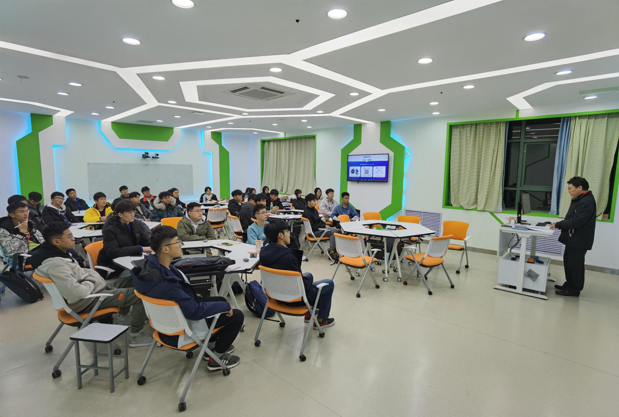 12月7日晚,校网信办主任黄鹤松在J1-414智慧教室为所联系的数据科学与大数据技术2020-2班学生宣讲党的十九届五中全会精神。班级全体同学参加了会议。