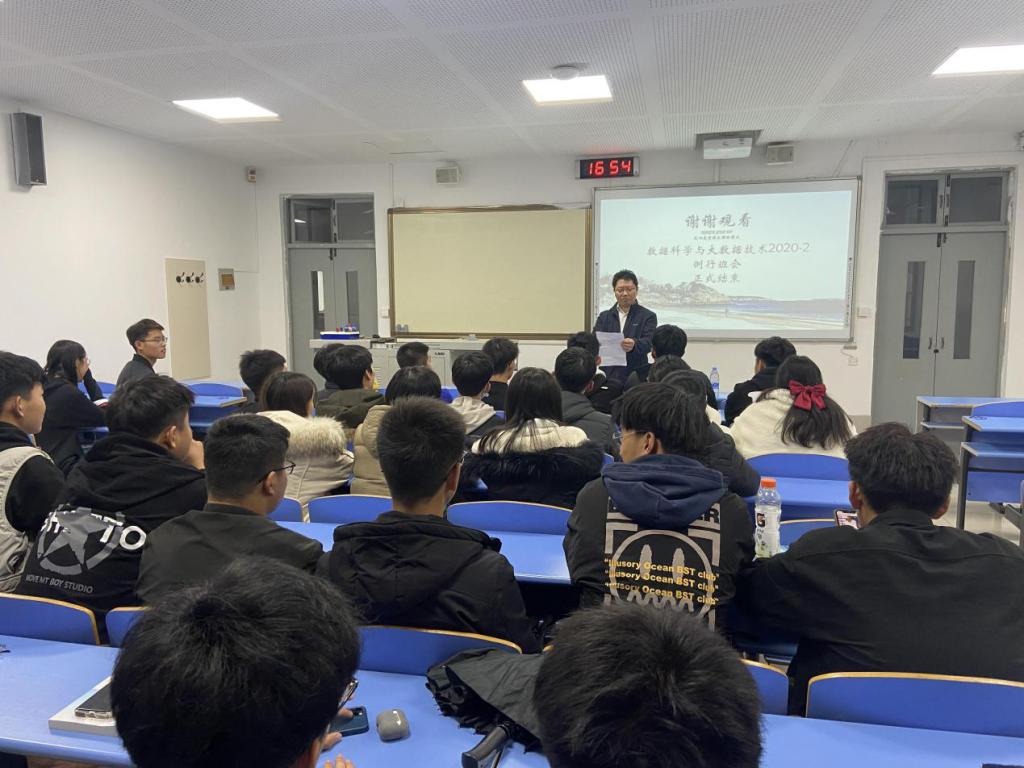 最后,黄鹤松对此次主题班会进行综合点评。他肯定了本次班会活动的重要意义,他指出,学校开展领导干部联系基层学生工作,作为数据科学与大数据技术2020-2班联系人,他一直关注着班级发展,看到班级良好的精神风貌,十分欣慰。黄主任结合自己求学、工作经历告诉同学们,作为一名大学生,要思考如何规划自己的大学生活,树立正确的人生目标与方向。他还呼吁同学们要学会了解生活、尝试体验生活,有意识地培养自己的沟通能力与实践能力,感恩父母,回报社会,他勉励大家要通过自己的努力,去取得更好的发展,并祝愿同学们健康快乐学习。