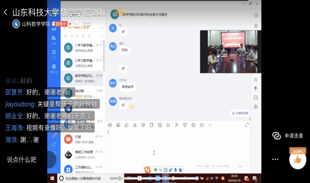 超越距离,“云”上见面。9月18日晚,比分网足球 在J9-425会议室举办2020级新生家长“云”见面会。学院党委副书记刘辉,副院长张同迁、杨红卫、方泳,团委书记谢菲菲,2020级新生辅导员及200余名新生家长参加会议。会议由刘辉主持。