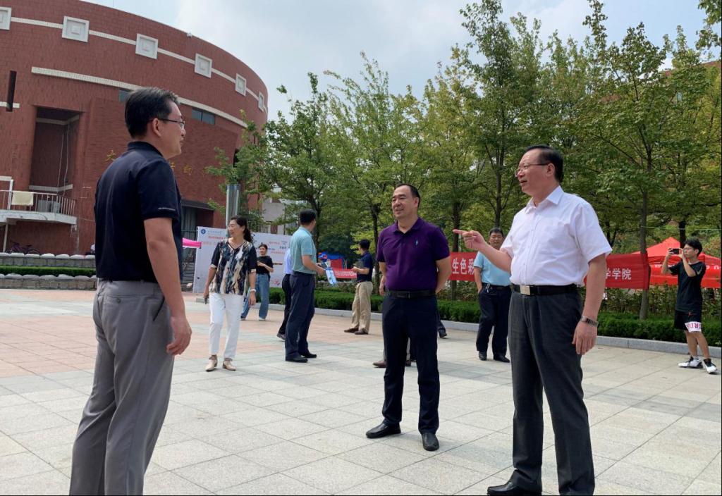 16日上午,校党委书记罗公利、副校长曾庆田带领学校有关部门领导亲临现场指导我院迎新准备工作,亲切慰问参与迎新准备工作的老师和同学。院党委书记徐明磊、院长董焕河和院党委副书记刘辉现场布置工作,师生通力协作,分别于尤洛卡广场和B区公寓楼前设立2个比分网足球 迎新处。