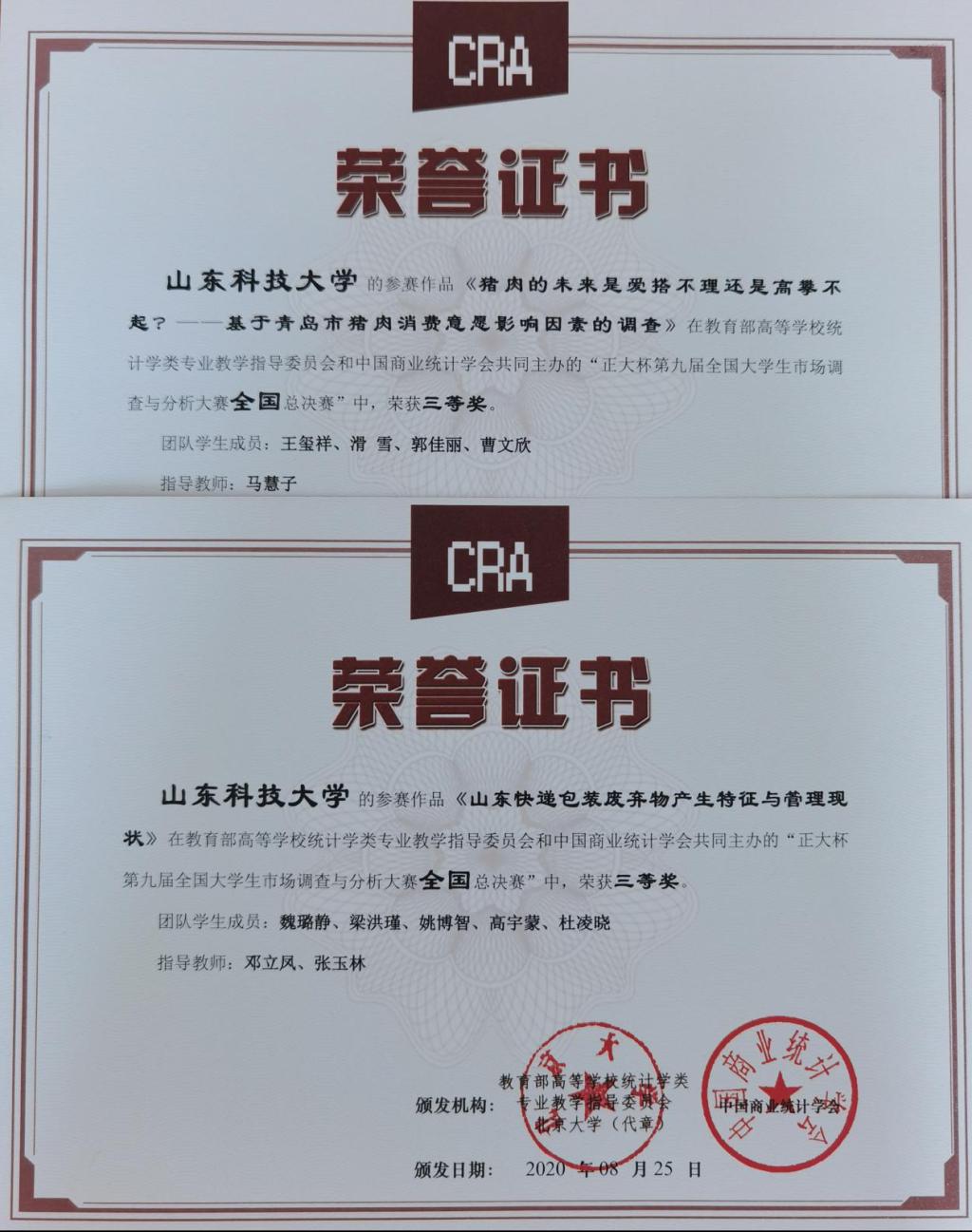 本次大赛是山东科技大学学生首次参赛,各参赛师生高度重视,参赛团队克服新冠疫情带来的调查困难,开展了为期半年的资料收集、问卷设计、市场云调研、报告撰写、视频汇报等前期筹备工作,历经磨练,精益求精,经过知识竞赛、校级选拔赛,6支参赛团队脱颖而出,成功入围省赛,并以最佳的状态、最优的作品向大赛评委展现了数学学子的风采。