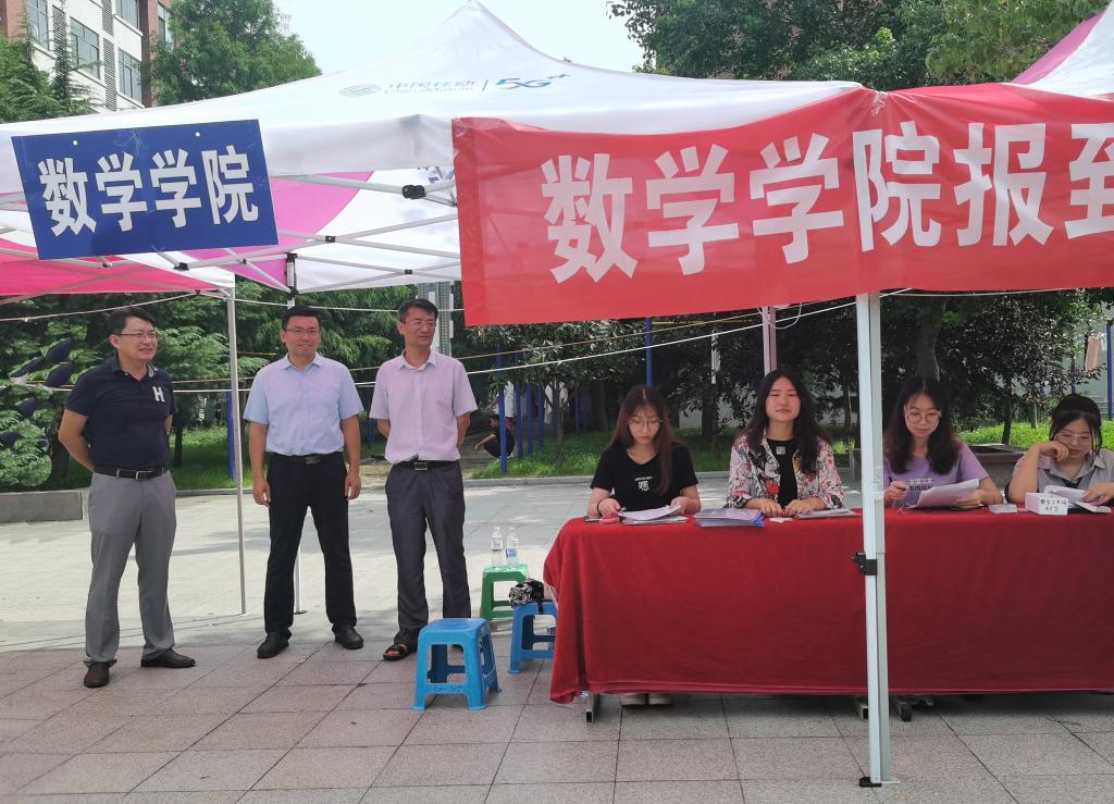 5日清晨,负责迎新的老师与志愿者同学早早赶到迎新现场,满怀热情与期待地等待研究生新生们的到来。同时,由于这个特殊的开学季,比分网足球 牢记“疫情防控无小事”,在报到点贴心准备了消毒酒精等防疫物品,筑牢数学学子的健康防线。上午8时许,学院迎来了第一位2020级研究生新生,迎新志愿者帮助新生提行李、办手续,并主动介绍学校和学院情况,协助新生完成登记、注册、领取材料、入住学生公寓等一系列手续,烈日下,志愿者们通红的面庞、滴落的汗水无不诠释学院对新成员的热情欢迎。